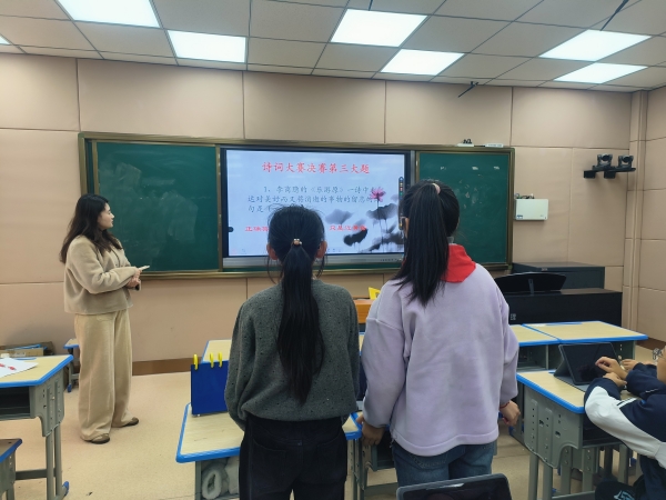 决赛现场氛围热烈,节奏紧凑有序。必答环节中,各代表队沉着冷静、对答如流,从唐诗宋词到经典名篇,选手们从容诵答,充分展现了日常积累的深厚功底;抢答环节更是高潮迭起,随着主持人一声令下,选手们眼疾手快按下抢答器,敏捷的反应与精准的作答赢得现场师生阵阵掌声,“反应力+知识储备”的双重比拼让赛场紧张感拉满。