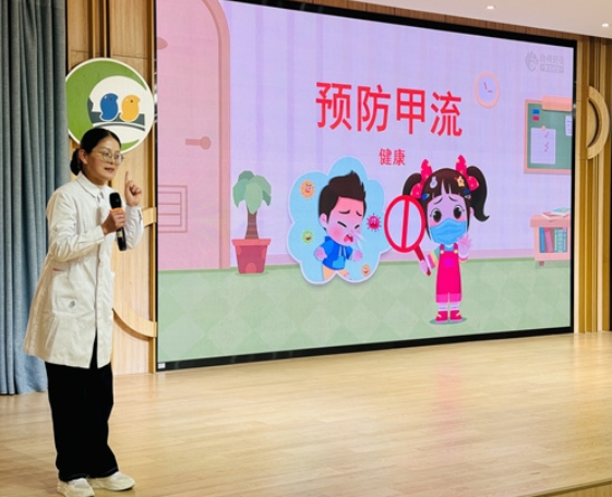 为增强幼儿对季节性传染病甲流的防范意识,帮助孩子们养成良好卫生习惯,2025年11月21日,合肥市宿州路幼儿园教育集团森林城分园小五班的龙云越小朋友的妈妈走进课堂,在音乐厅开展了一场生动的“预防甲流 健康相伴”主题活动。