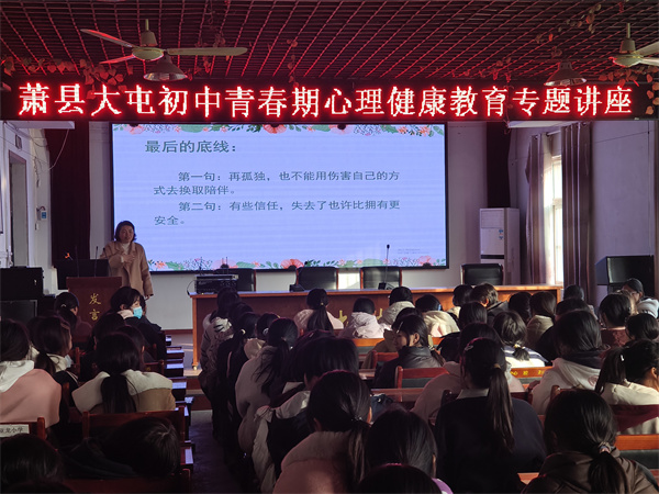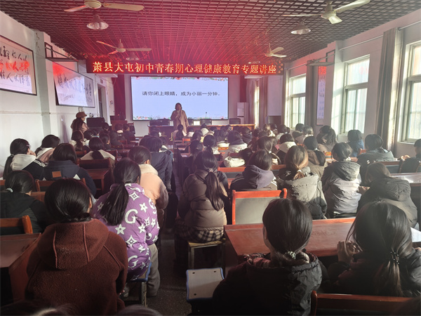 为帮助青春期女生正确应对身心变化,增强自我保护意识与能力,12月2日下午,萧县张大屯初中特别邀请萧县七色光巾帼志愿者协会资深心理咨询师、社工师李艳侠,为该校七、八年级全体女生带来了一场主题鲜明、内容务实的青春期心理健康教育讲座。此次活动聚焦女生成长中的困惑与挑战,旨在通过专业引导,助力她们自信、健康地走过青春旅程。