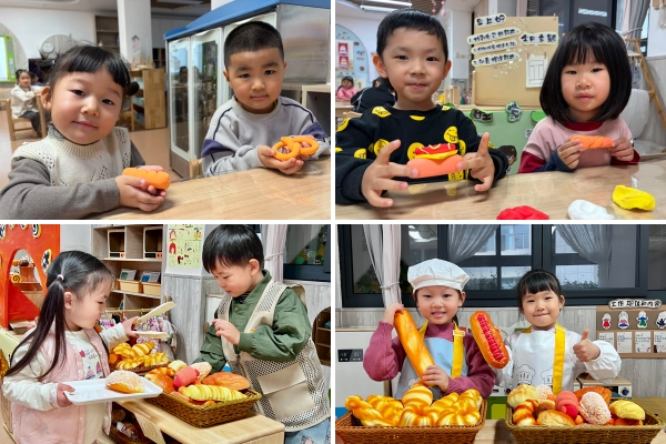 色彩鲜艳的面包店门头、琳琅满目的仿真面包、小巧的收银机与打包袋,瞬间让孩子们沉浸其中。孩子们自主分工,有的化身“烘焙师”,认真地整理、摆放各类“面包”,还戴上厨师帽体验制作的乐趣;有的扮演“收银员”,专注地为“顾客”结算、打包;还有的化身小顾客,拿着托盘挑选心仪的面包,与小伙伴礼貌沟通、有序交易。
