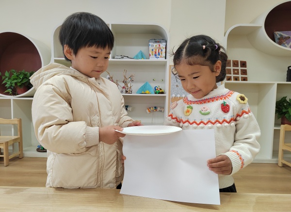 “软软的纸能站起来吗?”"纸可以承受重量吗?"带着这个有趣的问题,孩子们化身小小科学家开启实验。他们拿着不同材质的纸,尝试折叠、卷曲成不同形状,失败后不断调整方法。当调整后的纸张稳稳立住,还能成功托起物品时,孩子们欢呼雀跃,既发现了纸的特性,又锻炼了动手和解决问题的能力。