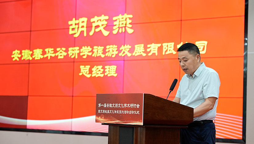 安徽春华谷研学旅游发展有限公司总经理胡茂燕,代表舒城文翁研学旅游小镇致欢迎词。随后,安徽省民俗学会会长王贤友,舒城文翁研究会常务副会长欧荣坤,中国人民大学文学院教授朱万曙,北京师范大学高等教育研究院常务副院长、教授洪成文,舒城县春秋乡党委副书记、乡长柏友长分别致辞。
