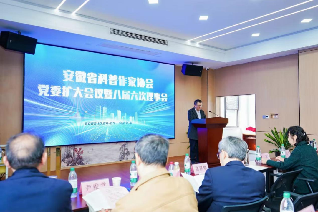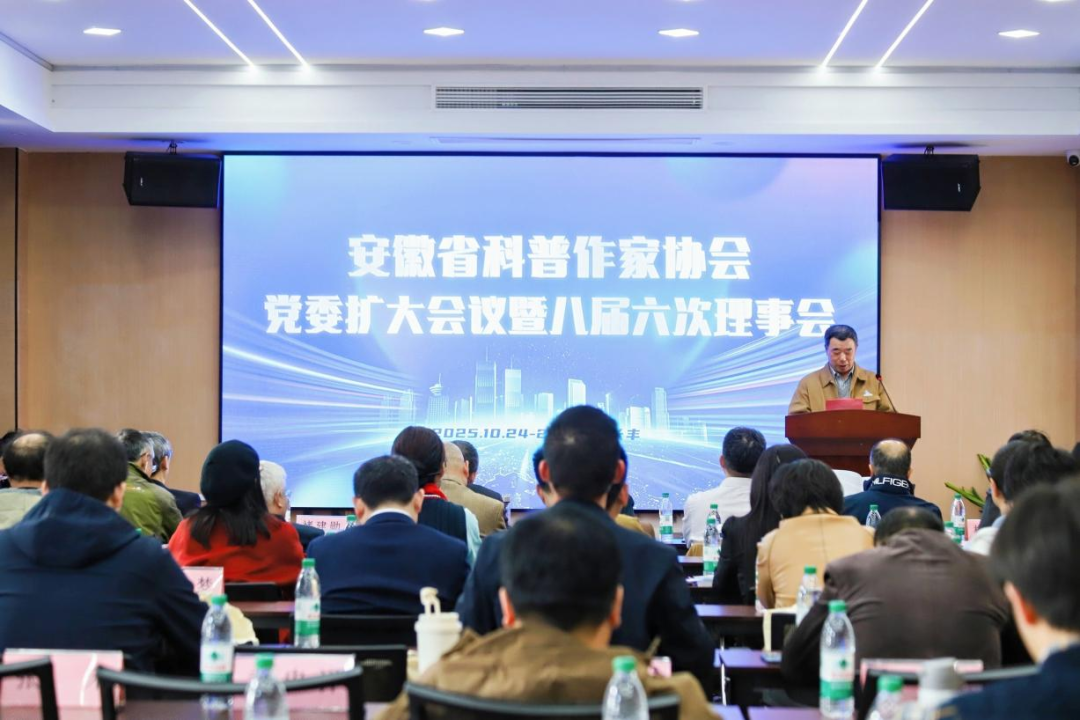 2025年10月24日,安徽省科普作家协会党委扩大会议暨八届六次理事会在合肥市长丰县造甲镇双河社区召开。协会党委委员、副理事长褚建勋主持会议,党委书记、理事长汤书昆,党委副书记黄蓓,党委委员、副理事长费世平、徐国盛等协会领导及47名理事出席会议,协会监事、部门负责人、秘书处工作人员、先进会员代表等近40人列席会议。