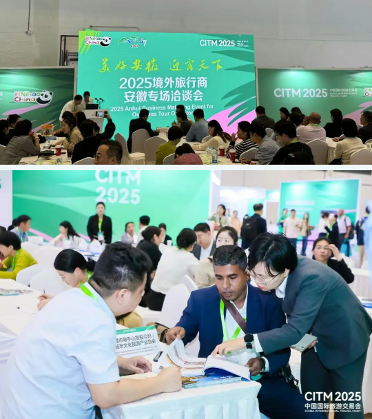 在“皖美如画”安徽文旅推介会上,省内多个城市及文旅集团系统展示优质资源。随后举办的国际旅行商安徽专场洽谈对接会吸引来自17个国家和地区的近百位旅行商参与,与安徽企业开展一对一对接,围绕产品定制、客源互送等达成多项合作,为“引客入皖”注入新动力。