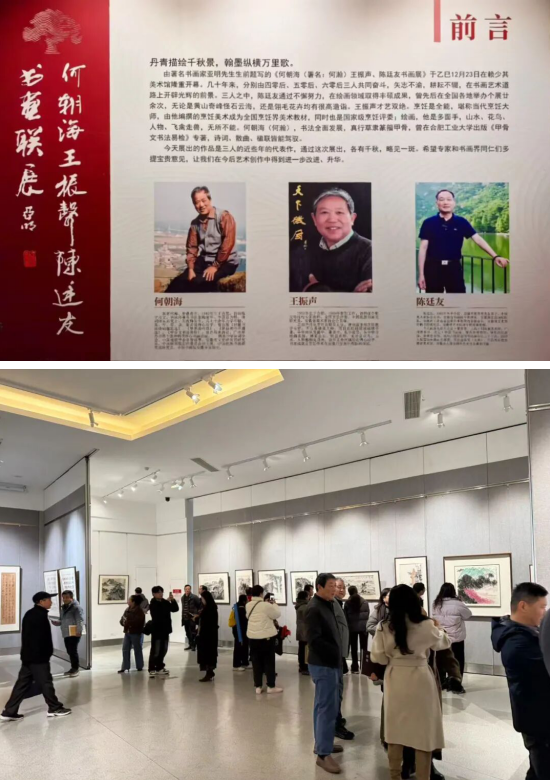 12月23日上午,由合肥市赖少其艺术馆主办,安徽渐江国画院、合肥徽庐艺社协办的“三树连珠——何朝海、王振声、陈廷友书画联展”在合肥赖少其艺术馆开幕。