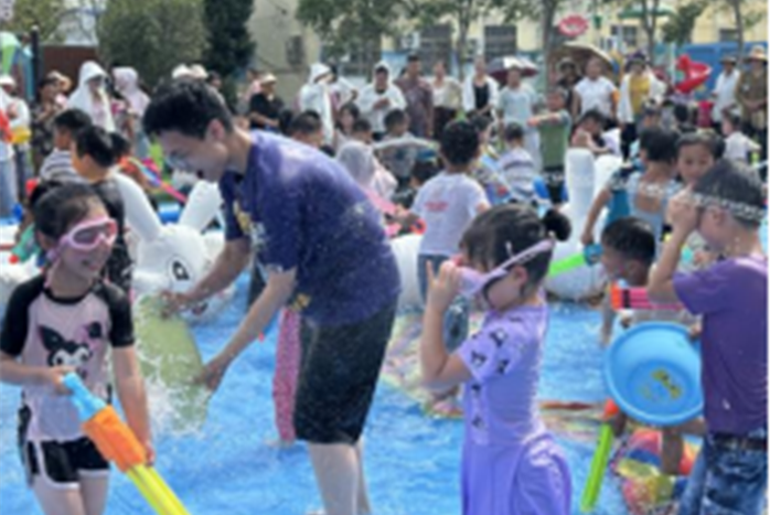 亲子戏水,“爸”气全开,二郎镇东方幼儿园组织了父亲节亲子玩水狂欢派对。爸爸和宝贝组成超强战队,在清凉水池中展开激烈“对战”!拿起炫酷的水枪,瞄准“敌方阵营”,发射“爱的子弹”,在水花四溅中,感受亲子互动的无限欢乐,让爸爸的勇敢与活力感染每一个瞬间。