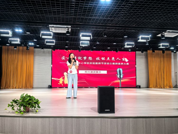 9:10 - 11:20 ,即兴演讲环节将氛围推向高潮。选手现场抽题,十分钟准备后依次登台。围绕“弘扬教育家精神”,教师们结合教学实例,从育人初心、师德践行、创新教学等角度,抒发对教育的热爱与担当。或娓娓道来、或激情澎湃的演讲,展现当代教师深耕教育的决心,评委同步打分,赛场掌声不断。