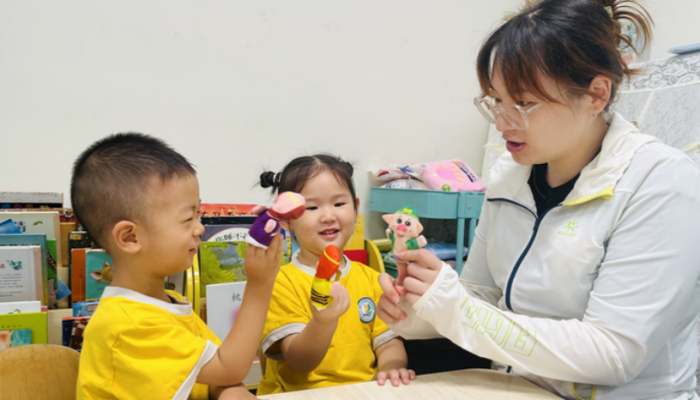在班级推普活动中,各班教师结合幼儿年龄特点设计了丰富有趣的活动。中班教师利用晨间接待,借助手指谣、动物叫声模仿游戏等,引导幼儿学说标准普通话,在互动中纠正发音,感受语言的韵律美。