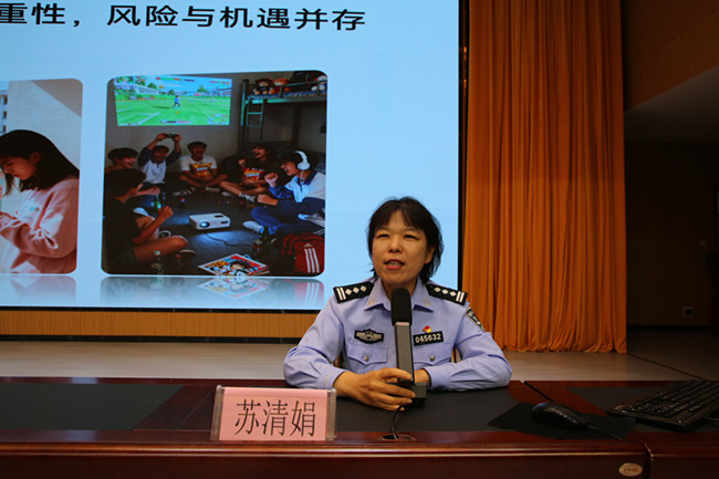 活动现场互动氛围浓厚,苏清娟以学生身边真实案件为切入点,深入浅出地剖析了学生群体面临的六大高发网络风险,重点讲解了防止个人信息泄露的技巧、网络谣言的严重危害,以及远离网络诈骗的实用方法,让抽象的安全知识变得通俗易懂、可学可用。