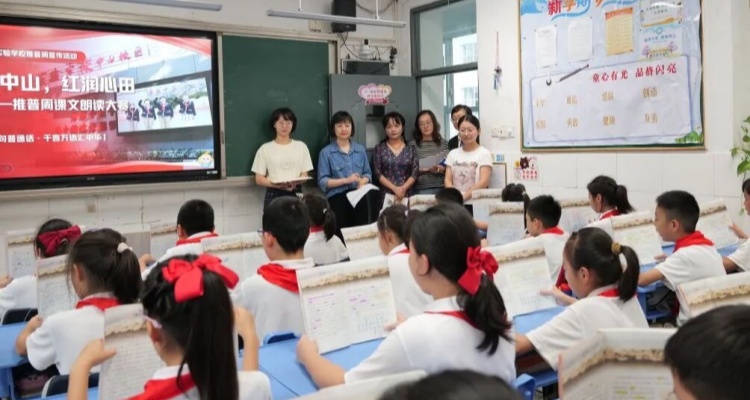 9月15日,推普周在庄严的国旗下讲话中正式启动。张雪雪老师从语言文化的角度,强调普通话作为沟通桥梁与民族精神载体的重要意义。结合抗战胜利纪念,教导处宣布以“声动中山,红润心田”为主题开展红色经典诵读大赛。张老师倡议全体师生从诵读中汲取精神力量,提升语言运用能力。动员会气氛热烈,为推普周后续活动奠定了坚实基础。