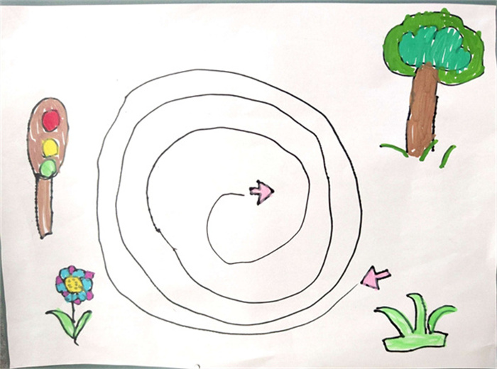 通过集体讨论,孩子们逐步认识到迷宫的多元结构:不仅要有入口和出口,还包括岔路口、死路等基本要素,还可加入障碍物、不同形状以增加趣味性。在教师的引导下,孩子们动手绘制出属于自己的迷宫设计图,迷宫从模糊的想象走向清晰的可视化规划。
