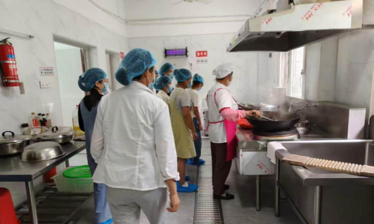 在园长的引导下,家长代表们戴上卫生帽、口罩及鞋套走进厨房操作间。现代化设备井然有序:智能蒸箱显示着实时温度,留样柜里分类存放着48小时内的餐食样本,色标管理系统让刀具与砧板按红(肉类)、绿(蔬菜)、蓝(水产)分区使用。
