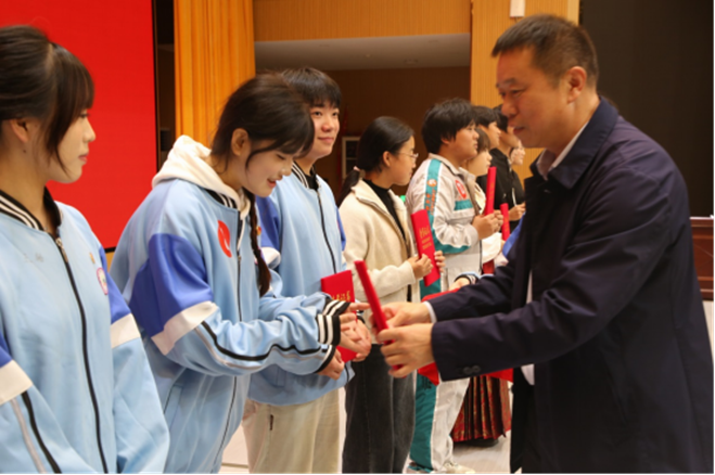 学校党委书记陈计葱为参赛选手颁发获奖证书,并对获奖选手表示祝贺。他在讲话中强调,中职学生是未来产业发展的生力军,更是民族团结的传承者与践行者。他希望同学们,一是做民族团结的“学习者”,主动了解各民族历史文化与风俗习惯,筑牢思想根基;二是做民族团结的“传播者”,在班级、宿舍分享民族团结故事,带动身边更多人关注民族情谊;三是做民族团结的“践行者”,将尊重与包容融入日常,用实际行动书写新时代青年的责任担当。