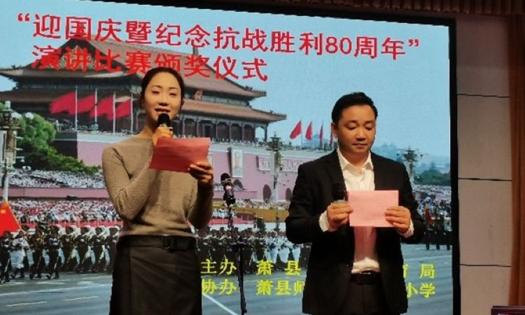 2025年9月29日上午,由萧县教育体育局关工委主办的“迎国庆暨纪念抗战胜利80周年”中学生演讲比赛在萧县师范学校附属小学大礼堂顺利举行。