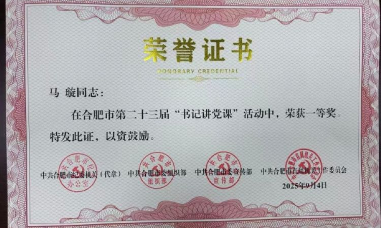 近日,合肥市第二十三届“书记讲党课”活动圆满收官,合肥市六安路小学荣城花园分校党支部书记马璇,凭借精彩表现荣获一等奖,为学校和党组织增添了光彩。