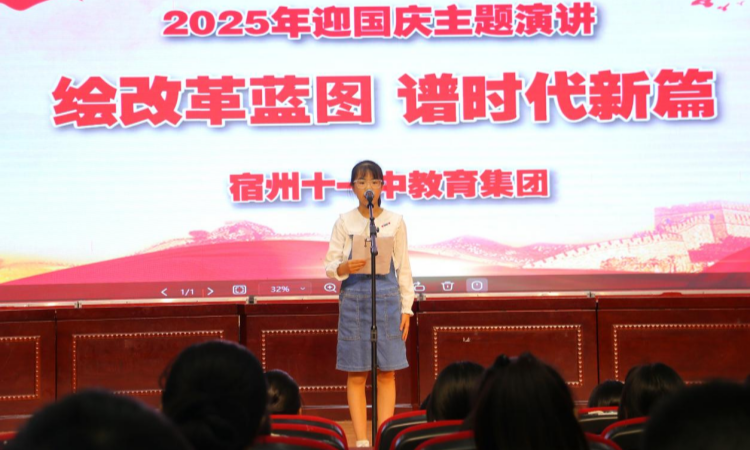 宿州十一中教育集团于2025年9月29日成功举办了“绘改革蓝图 谱时代新篇”迎国庆主题演讲比赛。