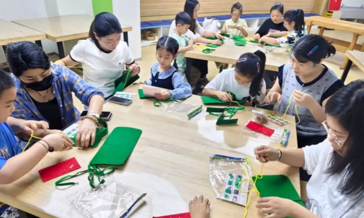 随后的“巧手制军包”环节将活动推向了高潮。在家长的协助下,孩子们一针一线地缝制起小小的“红军挎包”。这不仅是手工制作,更是一堂生动的历史实践课。当一个个饱含心意的小军包制作完成时,孩子们的脸上洋溢着自豪的笑容,红色的种子也在此刻悄然扎根心田。活动同样在静谧而温馨的自由阅读中画上圆满句号。