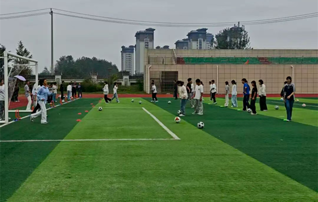 为适配不同课例需求,学校体育组提前两周完成器材筹备与调试。针对弯道跑教学,准备30 套不同规格的弯道跑标志桶;足球课例配备 50 个符合国际标准的训练用球、12 组可移动训练标志盘,赛前逐一检查充气状态与安全性。器材摆放严格遵循田径教学规范,为课例展示提供了坚实支撑。
