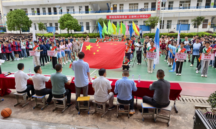 升旗仪式完毕,佐坝初中党支部书记、校长王劲华致开幕词,寄语赛事传承教育家精神、凝聚教育合力;裁判代表、运动员代表分别宣誓,承诺严守公平、拼搏奋进。最后,佐坝乡教育管理办公室主任张洁宣布赛事开幕,现场掌声雷动。