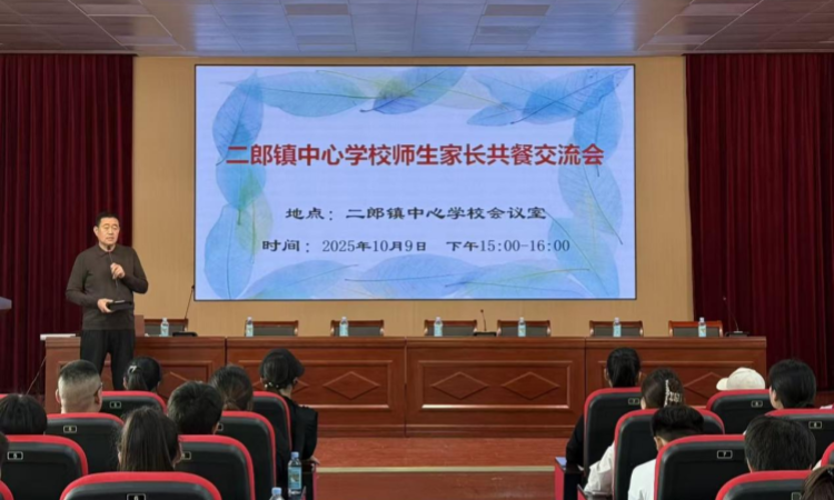 2025年10月9日,二郎镇中心学校组织开展师生家长共餐交流会,活动由校长王庆富主持,旨在通过家校联动,共同守护学生膳食健康,筑牢校园食品安全防线。