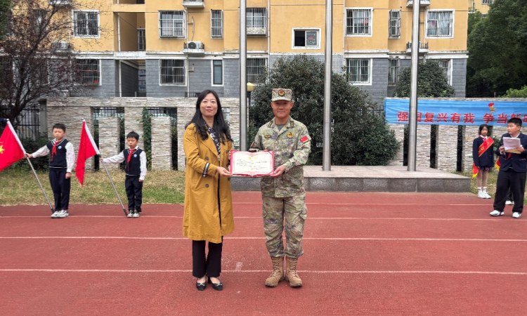 同时,为进一步强化爱国主义教育,厚植家国情怀,六小荣城正式聘请庐阳经济开发区(林店街道)武装部副部长、平安法治部副部长兰鹏祥同志担任国防教育校外辅导员。兰鹏祥同志在服役期间军事素质过硬,荣获个人三等功三次,并获多项高级别荣誉;退役后仍致力于国防事业,被评为合肥市警备区训练先进个人。他的加入,将爱国强军的种子深深播撒在队员们心中。