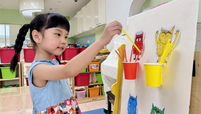 借助绘本《我的情绪小怪兽》带来的灵感,孩子尝试用不同颜色的彩纸表征当天的情绪,将抽象、看不见的情绪转化为直观的视觉体验。