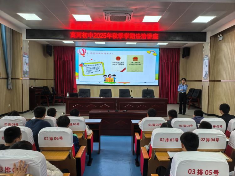 为进一步增强青少年法治意识,筑牢校园安全防线,10月15日,怀宁县高河初中特邀法治副校长朱丽警官走进校园,为全体师生带来了一堂生动且深刻的法治教育专题课。