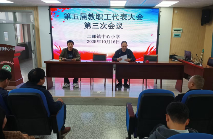 为健全学校民主管理机制,凝聚教职工智慧力量,10月16日,二郎镇中心小学第五届教职工代表大会第三次会议隆重召开。15位教职工代表齐聚一堂,以高度的责任感和使命感,共商学校发展大计,审议多项关键制度,为学校规范发展、内涵提升注入强劲动力。