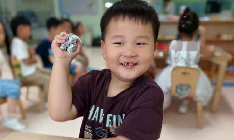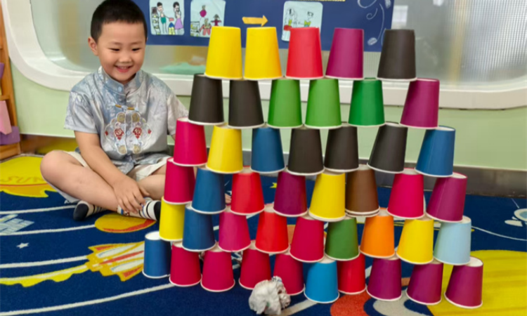 孩子们兴致勃勃揉团报纸,很快做成圆滚滚的纸球。他们对玩法充满热情,相互合作、分享,共同探索新玩法:有的轻滚纸球看它穿梭;有的用力抛球尝试碰倒多米诺骨牌。大家乐于尝试、敢于挑战,尽情享受纸球游戏的欢乐与探索乐趣。