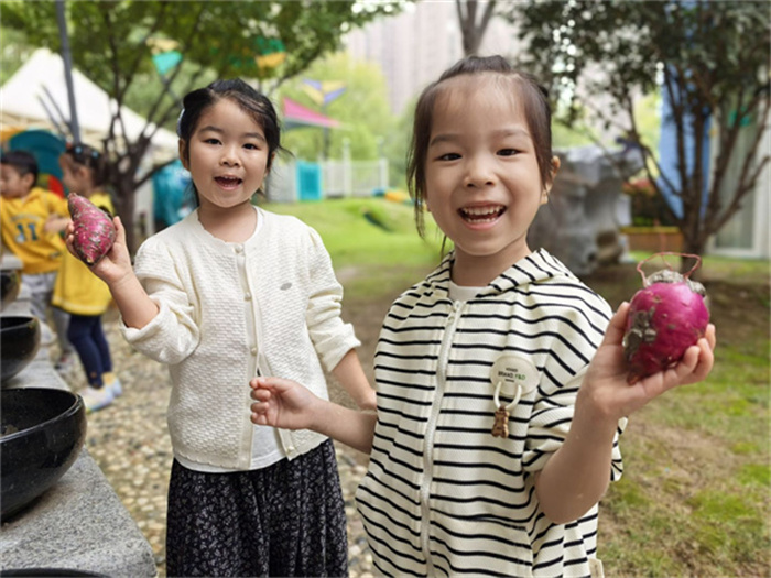 紧接着,一场欢乐的“田间”收获开始了!孩子们来到种植区,