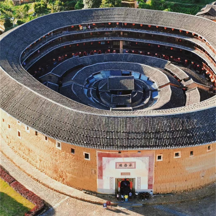 桑老师:福建土楼不但是中华瑰宝,更是世界遗产,是由石灰、沙土混合而成的,非常坚固,可以防火、防风、防盗、防野兽。