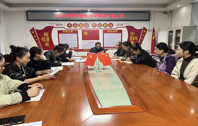 近日,太和县赵集小学举行了2025年教师代表大会。本次大会是学校民主管理的重要实践,旨在凝聚教职工共识、规范管理机制,为学校高质量发展奠定基础。学校领导班子成员及9名教师代表参会,会议由教务副主任程娟子主持。