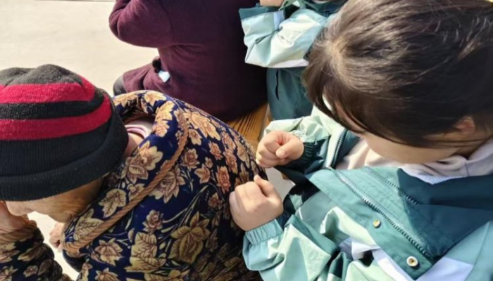 一进入大庙敬老院,孩子们便用稚嫩的行动传递着温暖。他们有的为爷爷奶奶轻轻捶背,一下下充满力量又带着小心;有的拿起梳子,认真地为爷爷奶奶梳理头发,专注的神情中满是敬爱;还有的走进爷爷奶奶的房间,送上精心准备的小礼物,用童言童语向爷爷奶奶表达节日的祝福。老人们脸上洋溢着幸福的笑容,整个敬老院充满了温馨的气息。