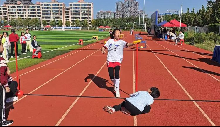荣耀的背后,是日复一日的汗水与付出。许多个傍晚,当校园渐渐归于宁静,操场上却依然能看到董训龙、郭悦鸣、孙梦雨、李梓豪四位老师带领队员们辛勤备战的身影。他们带学生反复熟悉比赛规则,模拟实战场景,细抠每一个发力技巧,演练每一次战术配合。正是这黄昏下的每一滴汗水,铸就了赛场上从容应对挑战的底气。