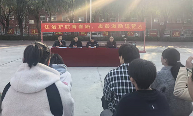 大会伊始,派出所民警王飞龙为师生带来安全专题培训。他结合校园及周边实际,围绕校内外安全防护要点,从交通安全、课间活动安全、防欺凌、防诈骗等方面展开讲解,细致阐述了学习生活中需警惕的安全风险与应对技巧,用贴近学生的案例强化安全防范意识,以法治力量为青春保驾护航,践行大会“法治护航青春路”的主题精神。