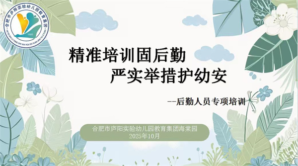 为进一步巩固校园安全管理成效,提升后勤团队专业水平,2025年10月30日,合肥市庐阳实验幼儿园教育集团海棠园开展后勤专项培训。