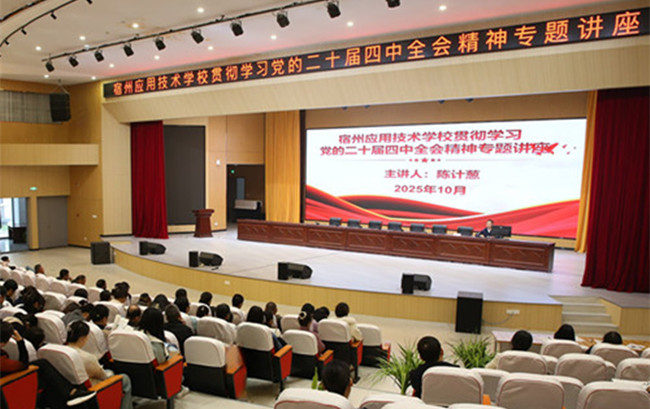 10月31日,宿州应用技术学校在报告厅召开贯彻学习党的二十届四中全会精神专题讲座,学校党委书记陈计葱担任主讲人,全校200余名教师参加此次学习活动。