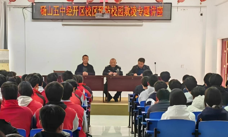 为进一步提高青少年法律意识,增强青少年自我保护能力,预防校园欺凌事件发生,营造和谐美好的校园环境,10月31日,砀山县第五中学教育集团经开区校区邀请城关派出所三级高级警官杨健,为师生带来一场防范校园欺凌的专题法治教育讲座。