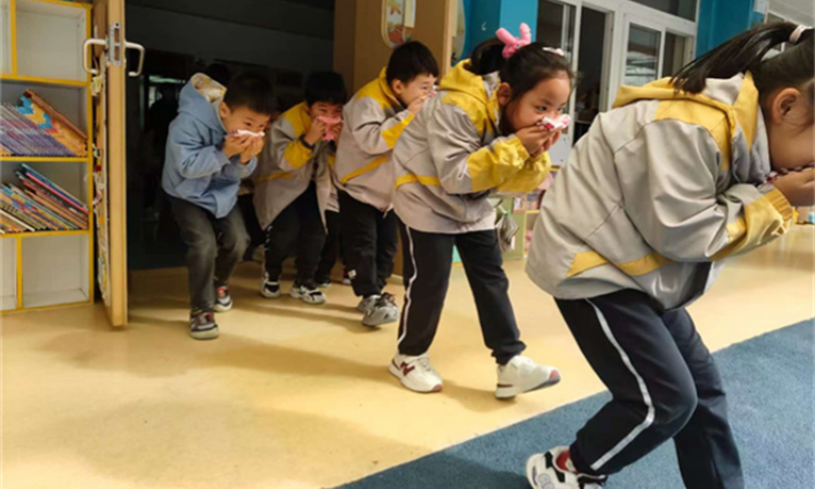 上午10时整,随着消防警报声响起,演练正式拉开帷幕。各班级教师迅速反应,立即停止一切活动,组织幼儿进入紧急疏散状态。孩子们在老师的引导下,用湿毛巾捂住口鼻,弯腰低姿,沿着预定的疏散路线,快速、有序地从各个教室向安全地带撤离至指定集合点。整个疏散过程紧张而不慌乱,做到安全、高效、有序。