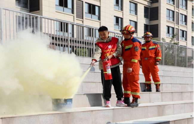 演练尾声,政教处主任代东进对本次演练进行总结,肯定了七年级师生在演练中的出色表现,同时指出细节上的不足,并提出改进建议。随后,砀山县消防救援大队队员开展消防安全知识宣讲,进一步普及火灾预防、初期扑救等实用技能,并演示了灭火器的使用方法。