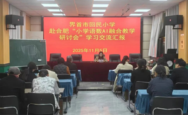 为探索AI技术与小学语数教学的融合路径,提升教师教学能力,11月5日,界首市回民小学组织开展赴合肥参加“全国小学语文、数学AI融合课程教学打造课堂教学新生态观摩研讨会”专题学习交流汇报会,全体教师齐聚一堂,共享学习成果。