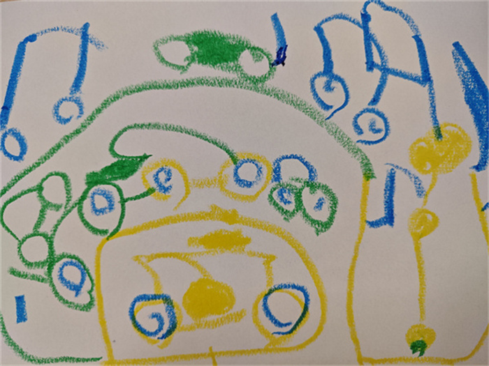 大家用画笔记录下“豆子先生”的成长日记。画纸上,豆子从一颗圆球,到长出“尾巴”,再到顶着两片绿叶,最后变成一棵挺拔的“豆苗树”。他们的画虽然稚拙,却充满了对生命的想象与期待。