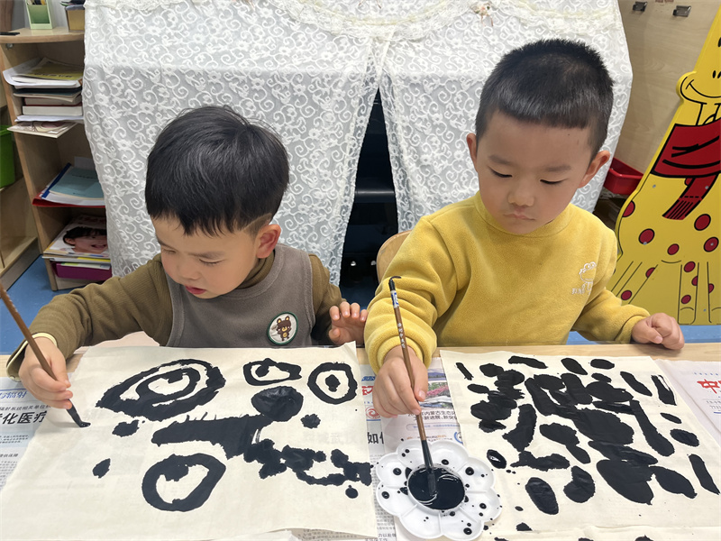 在这段充满墨香与童趣的时光里,孩子们从好奇地拿起毛笔,到大胆挥洒线条。从认识墨色浓淡,到创作出一幅幅灵动的作品,每一步成长都令人欣喜。这份成长还在继续,期待孩子们用笔墨,继续书写属于他们的童趣与惊喜。(周玲玲)