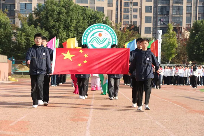 陈校长以铿锵之声宣布:“蚌埠市城南学校初中部第二届田径运动会现在开幕!” 话音刚落,七彩气球应声而起,礼花盛放!承载着初中部39个班级的集体梦想腾空而起,瞬间点燃了全场的激情!