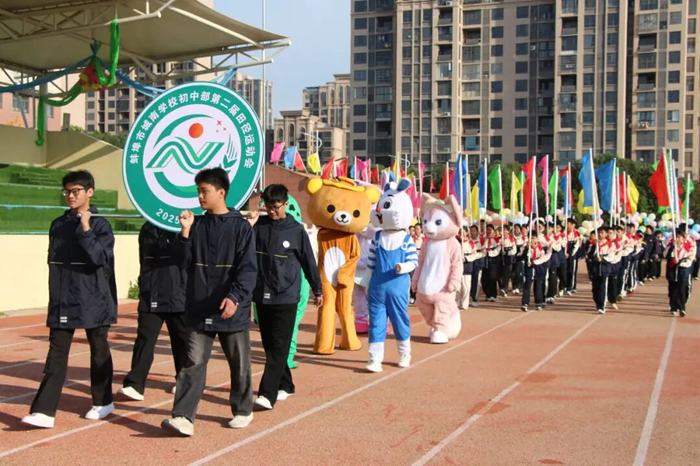 在激昂的《运动员进行曲》中,国旗护卫队英姿飒爽,步伐坚定,引领着五彩斑斓的方阵队伍依次入场。彩旗方阵如流动的彩虹,布偶方阵活力十足,校旗方阵彰显学校气度,裁判员方队步履从容。