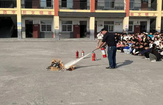 随后,学校德育处刘振玉主任结合实物演示,向师生详细讲解了灭火器的构造、适用场景及“提、拔、握、压”四字使用口诀,并邀请教师和学生代表现场实操演练,让大家在亲身体验中掌握灭火技能。同时,安全员还强调了校园内常见火灾隐患,提醒师生日常要注意用电、用火安全,养成良好的安全习惯。并由学生亲自操作使用消防栓进行灭火实操。