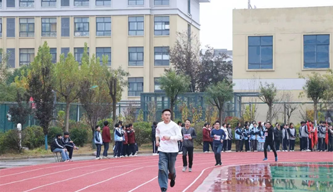 当日上午,教职工3000米比赛成为全场焦点。平日里站在三尺讲台上传道授业的老师们,此刻换上运动装,化身赛场上的 “追光者”。起跑后,老师们保持着稳健的节奏,雨水打湿了跑道,却让他们的身影更显坚毅。跑道旁,学生拉拉队早已举着加油牌、喊着口号,“老师加油!”“坚持就是胜利!” 的呐喊声此起彼伏,清脆的声音穿透雨幕,成为老师们前进的最强动力。有的老师虽已气喘吁吁,却在听到学生的呐喊后,再次加快脚步 —— 这不仅是一场比赛,更是师生间温暖的双向奔赴。