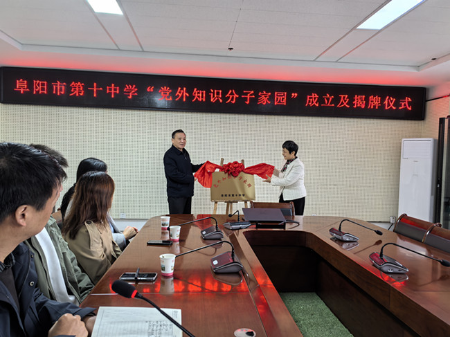 10月30日,阜阳市第十中学“党外知识分子家园”成立暨揭牌仪式顺利举行。长申金成等一行三人到校指导,学校相关领导及党外知识分子代表共同参加了仪式。颍东区人大副主任、区知联会会长曹伟,区委统战部常务副部长、区知联会常务副会