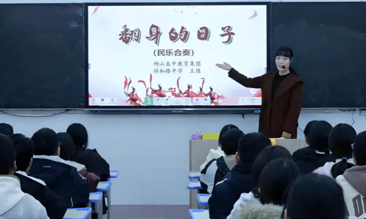 活动中,砀山县骨干教师王佳带领学生展示了一堂精彩的民乐合奏课例《翻身的日子》。她以丰富的教学经验和创新的课堂设计,带领学生在旋律与节奏中沉浸式感受中国民乐魅力,用师生互动与全员参与的热烈氛围,打造了一堂兼具趣味性与专业性的优质课例。