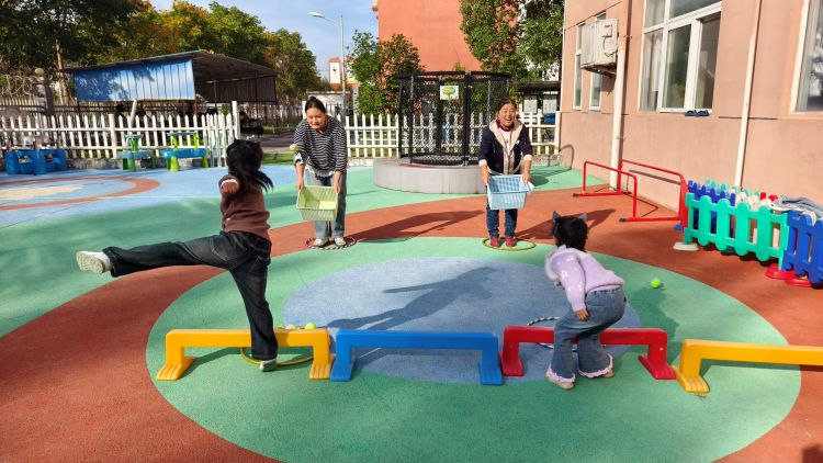 初冬的阳光温柔洒落,天湖中心幼儿园的操场化作一片欢乐的“森林秘境”,幼儿与家长正携手开启一场充满欢笑与暖意的“森林探险”。